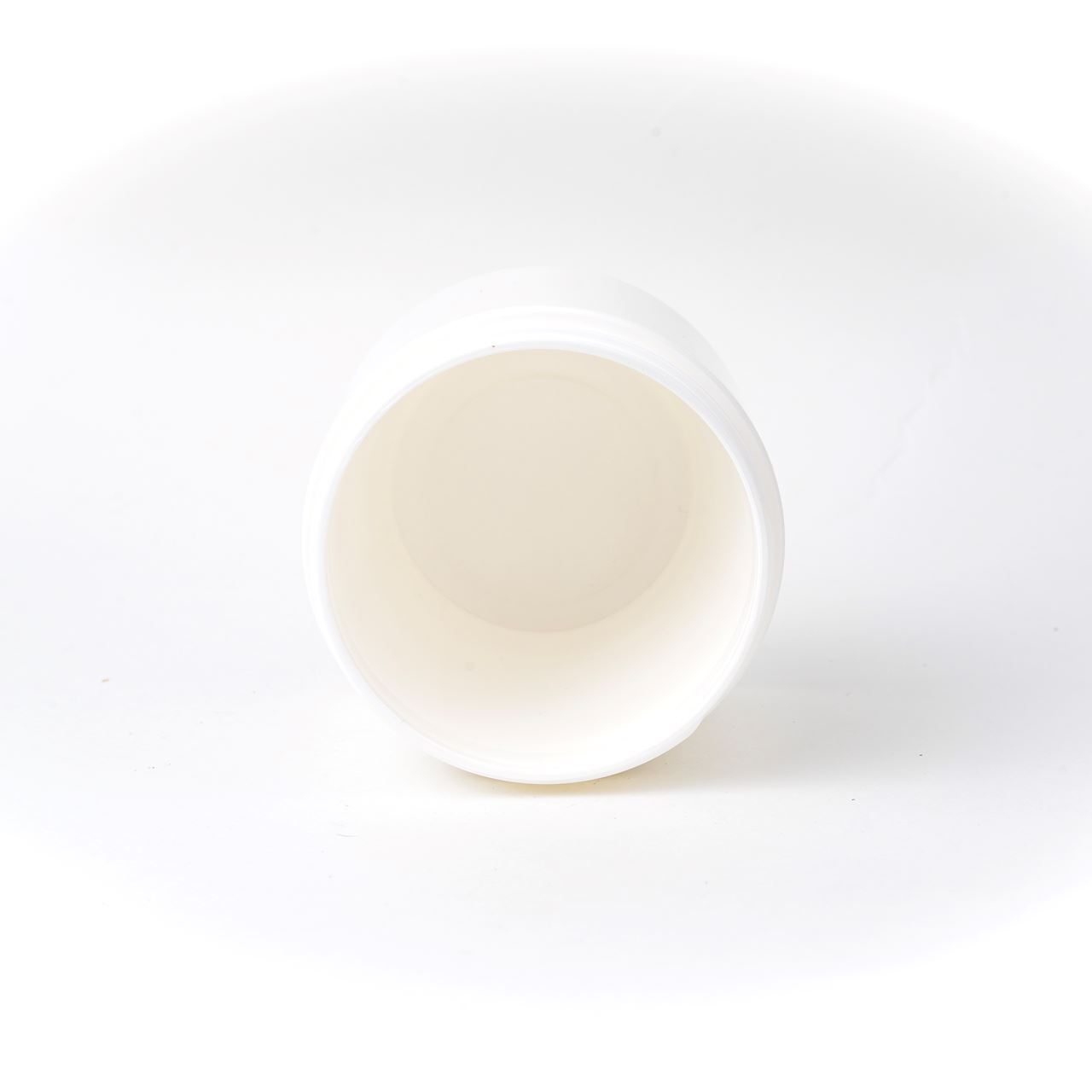 Double Wall Plastic Jars combine a polypropylene inner jar with a polypropylene outer jar for a cosmetic appearance at a very economical price. This 2 oz white PP outer PP inner plastic double wall jar has a 58-400 continuous thread neck finish and flat base. Double-wall jars are great for packaging creams, lotions, body butters, and other similar products.