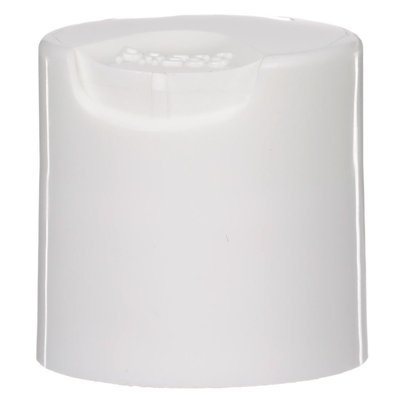 Disc Top Caps, also known as “Press Top” closure are easy to open and close using one hand. To dispense the product, you depress the cap causing the opposite to snap up. You can then neatly dispense the product by applying pressure to the bottle. Next, press the cap back down neatly to store your product. The push-close lid makes for no-mess dispensing and reduces spillage. This 24-410 white polypropylene (PP) plastic disc top cap has smooth PP wall disc and smooth outside round skirt.