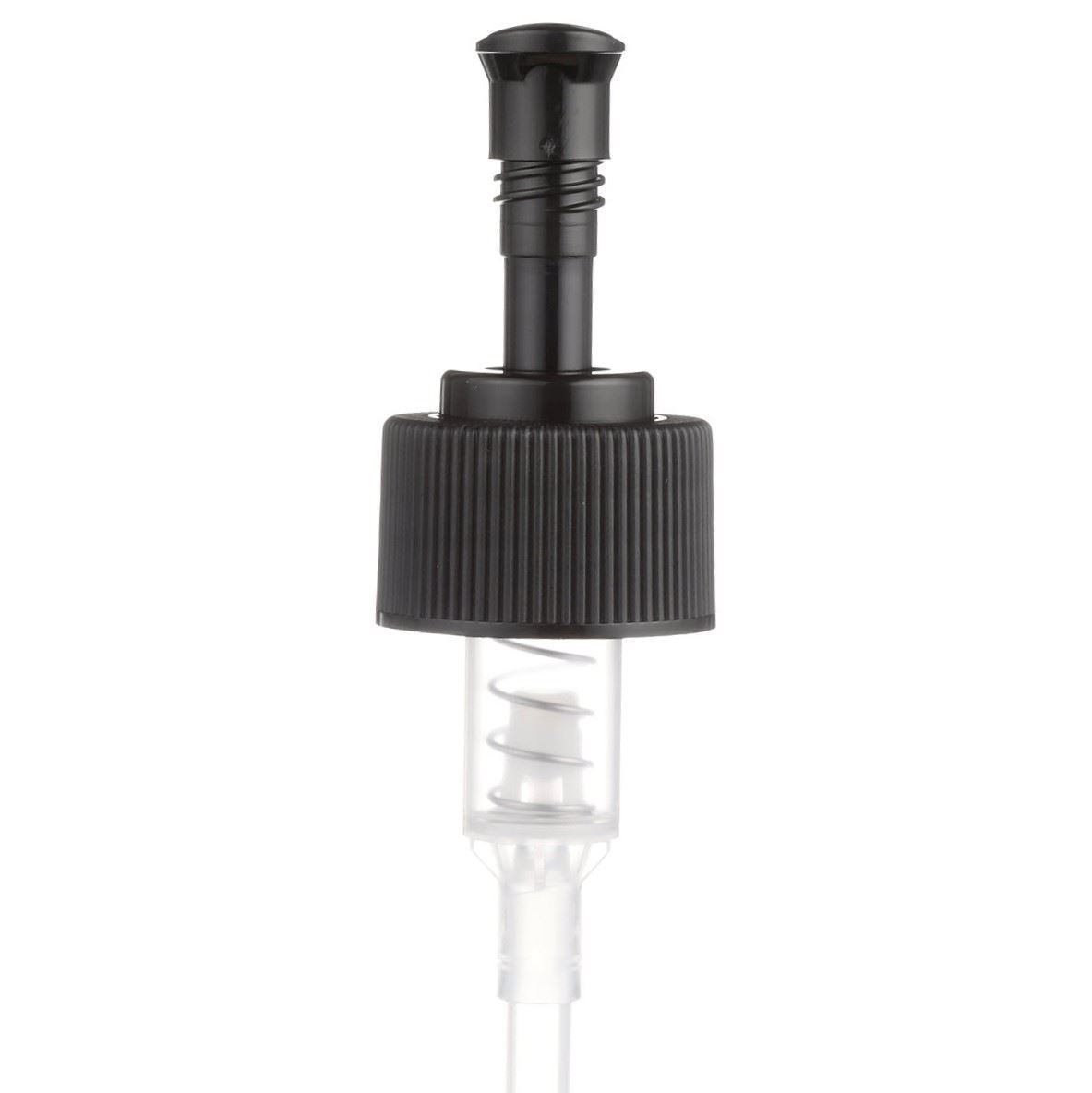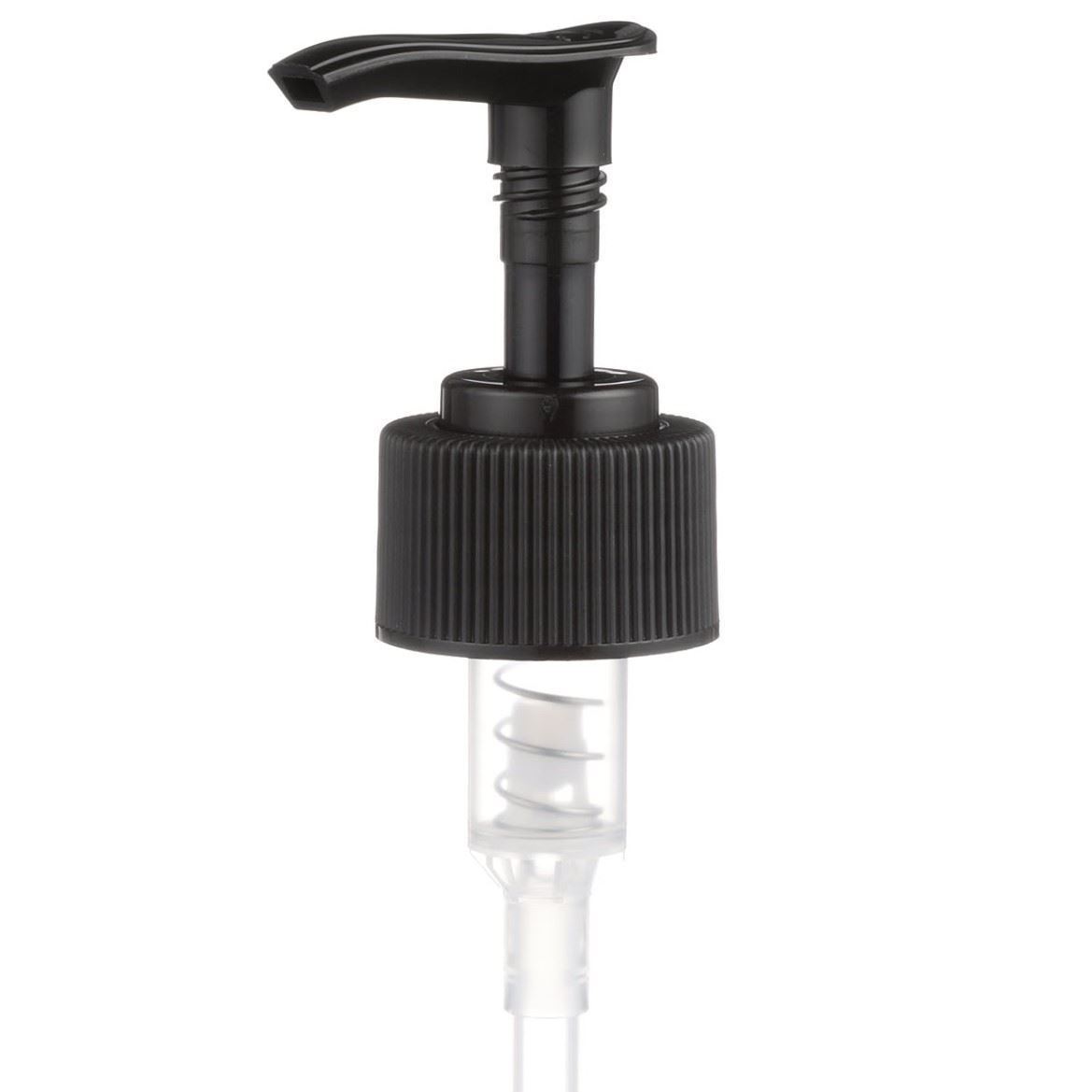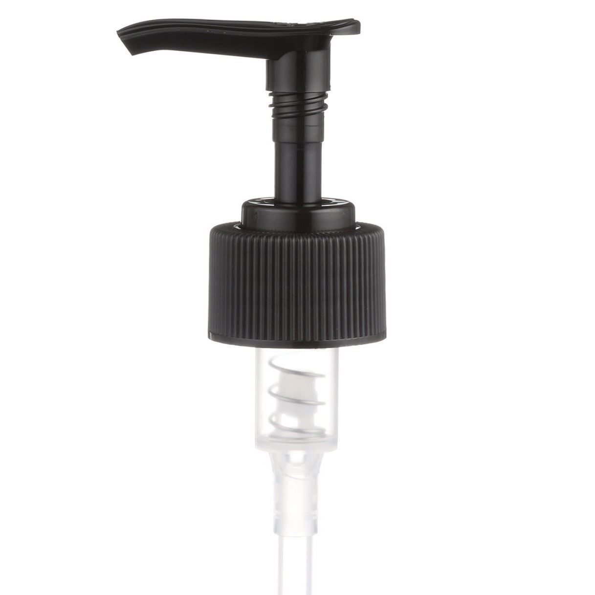 The dispensing pumps, also called as “lotion pumps”, allow for high viscosity products to be dispensed easily. It is a great option for dispensing a consistent amount of product with each pump. This 28-410 black polypropylene (PP) plastic dispensing pump has ribbed skirt with a 9 and 1/4 inch dip tube. The output is 2 ml each time the pump is pressed. This pump can be locked in the up position, preventing accidental discharge. It’s perfect option for lotions, creams and other skincare products. These pumps could be used with a variety of glass, plastic or metal containers.