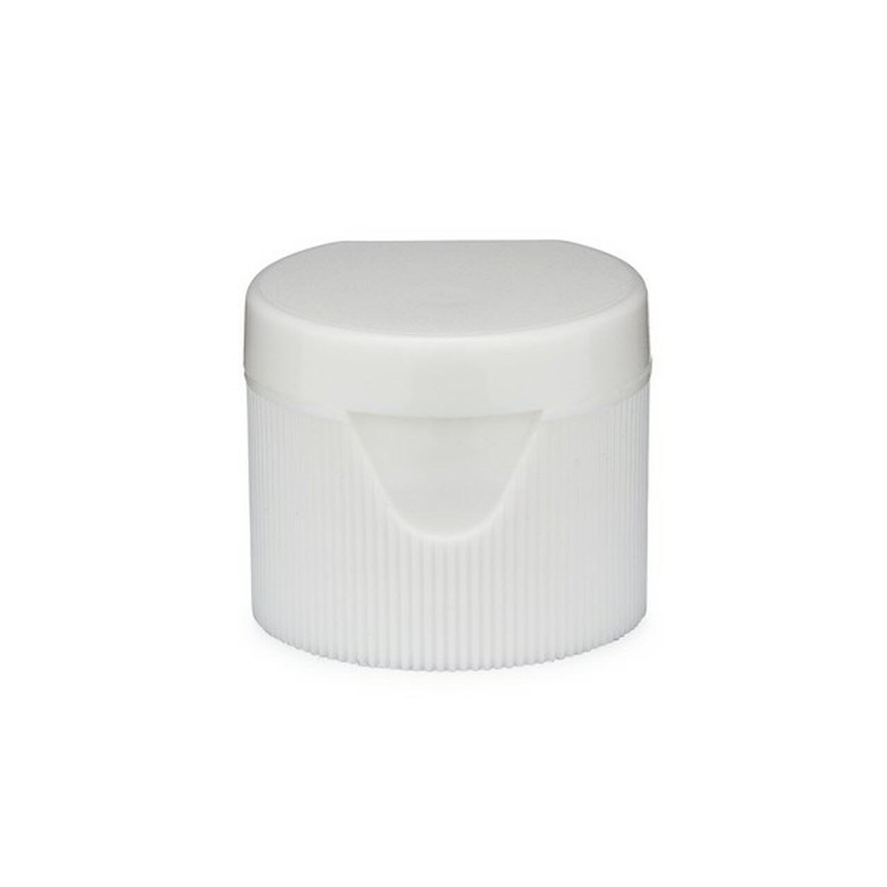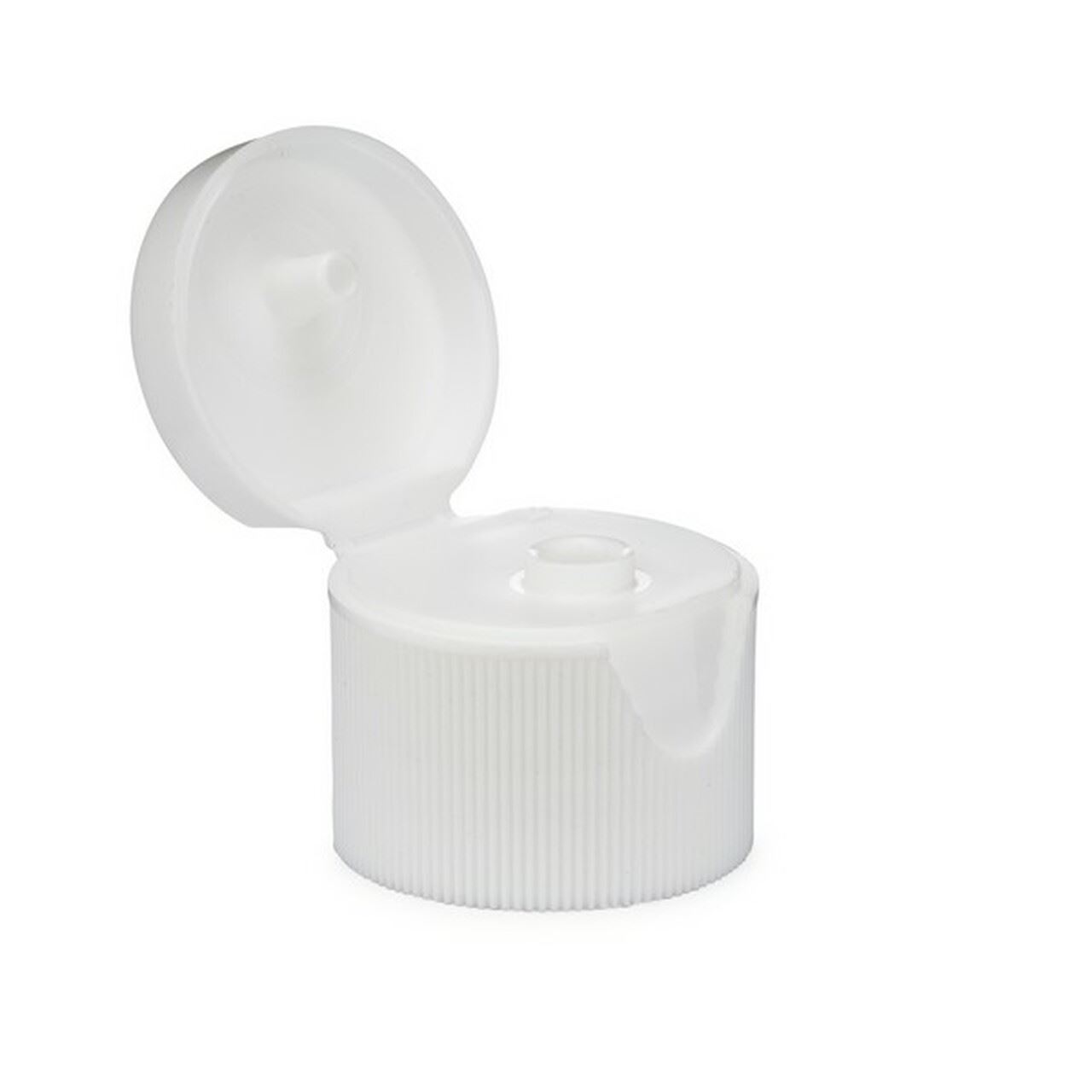 The snap top caps are a great choice for containing products that need to be dispensed in smaller doses. To dispense the product the hinged cap is flipped up, the product is dispensed, and then the cap is re-sealed by simply pressing the cap back onto the beaded finish. This 28-410 white polypropylene (PP) plastic flip top dispensing cap has 0.250 inch orifice, crab claw sealing mechanism and ribbed outside round skirt. These snap top caps are great for dispensing liquid cosmetics, lotions, soaps and facial ointments. This ribbed flip cap offers reliable functionality every time, making it easy to open, even with wet hands.