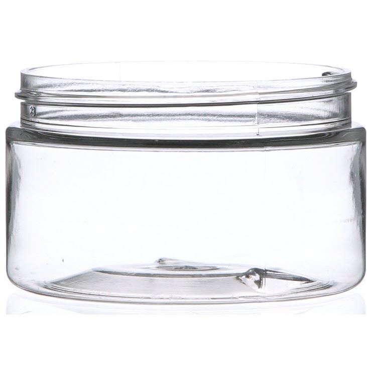 The PET (polyethylene terephthalate) jars are known for their Glass-like appearance and Steel-like strength. The large, round body gives you plenty of space for a creative label and to showcase your product. This 4 oz clear PET heavy wall jar has a 70-400 continuous thread neck finish and round base. Due to high clarity and durability during shipping PET jars are perfect for multiple products such as personal care products such as bath salts, creams, balms, gels, body scrubs, and ointments. The wide opening allows for effortless product removal making it a great choice for food products such as peanut and nut butters
