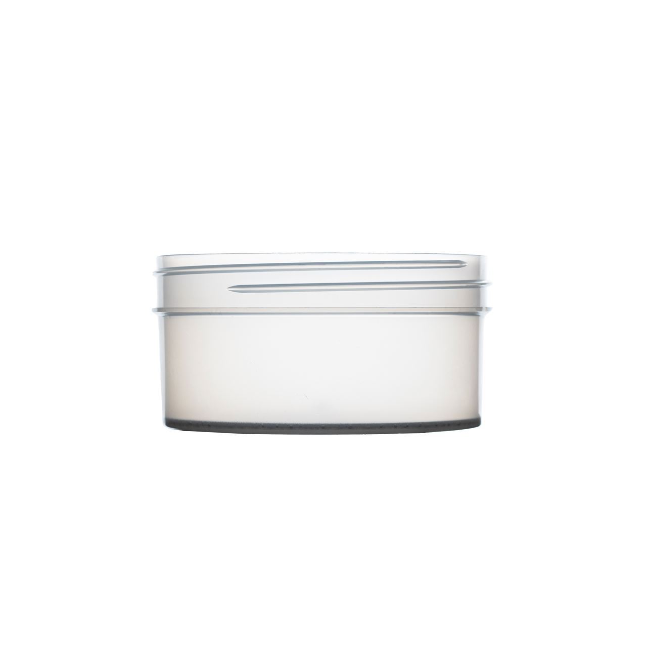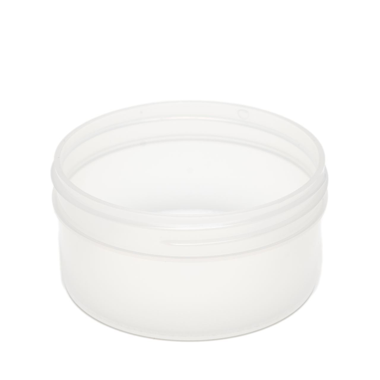 Regular Wall (polypropylene) Plastic Jars offer a cosmetic appearance at a very economical price. This 4 oz natural PP regular wall jar has a 89 mm continuous thread neck finish. It is straight sided, which in packaging terminology describes the sharp angle between the side wall and the base of the jar. PP jars are perfect for multiple products such as personal care products such as bath salts, creams, balms, gels, body scrubs, and ointments.