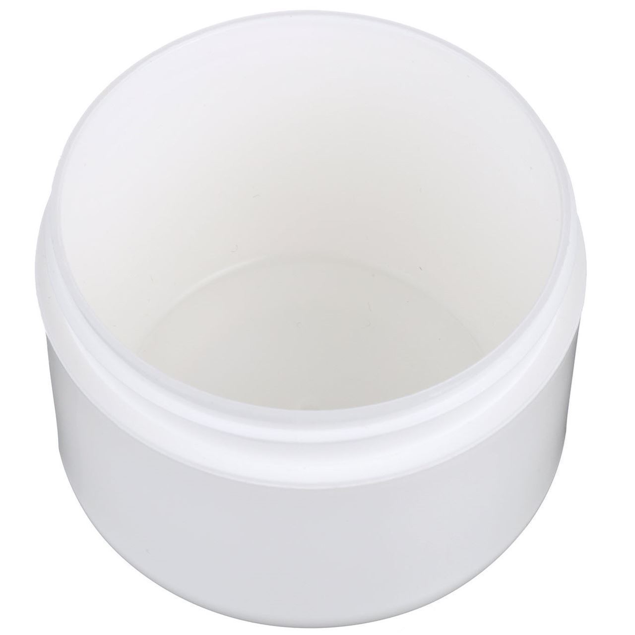 Double Wall Plastic Jars combine a polypropylene inner jar with a polypropylene outer jar for a cosmetic appearance at a very economical price. This 8 oz white PP outer PP inner plastic double wall jar has a 89-400 continuous thread neck finish with dome closure and round base to add an elegant feel to your finished good. Double-wall jars are great for packaging creams, lotions, body butters, and other similar products.