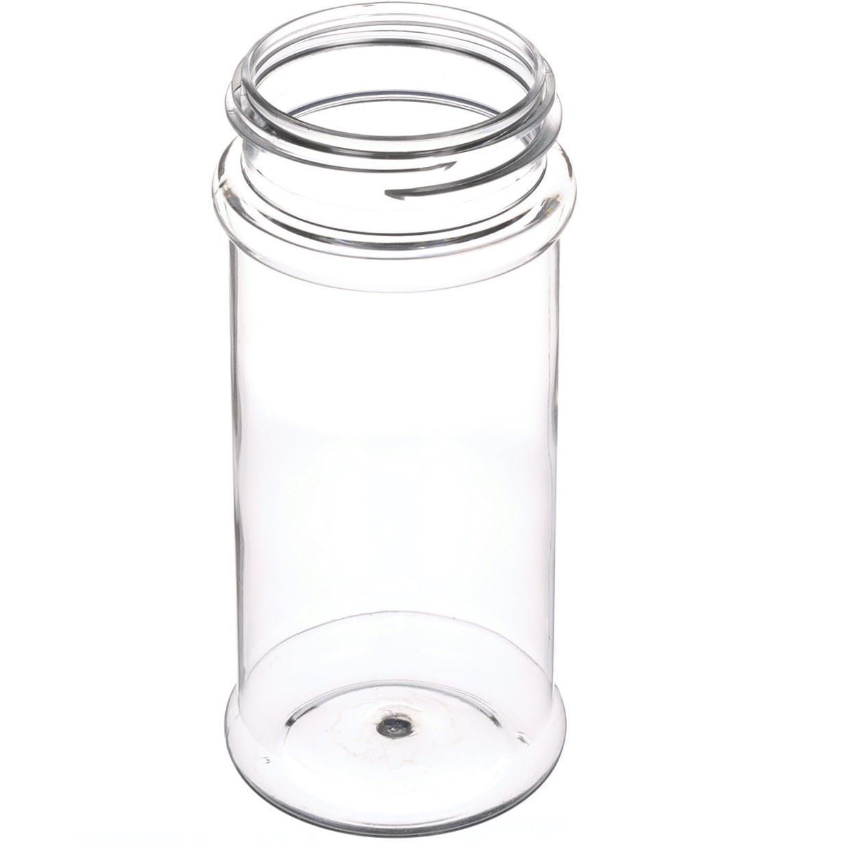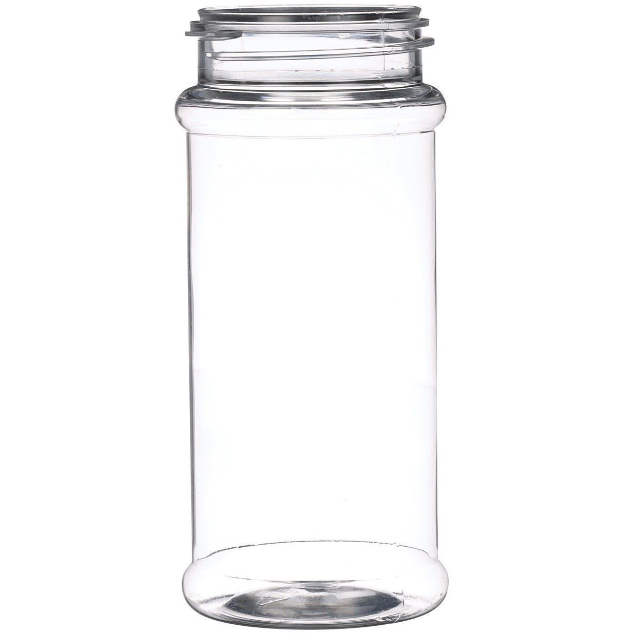 These PET (polyethylene terephthalate) jars also referred to as Spice Jars are great containers for creating a complete spice package. This 8.4 oz clear PET straight-sided spice jar has a round base, 53-485 continuous thread neck finish and a wide mouth opening that will fit a measuring spoon. The recessed body panel is ideal for label application for enhanced shelf presence. This spice container is popular in the food industry for packaging dry products such as powders, spices, herbs and seasonings. It can also be used in the following applications – glitter, sprinkles, arts and crafts, bath salts and baby snacks.